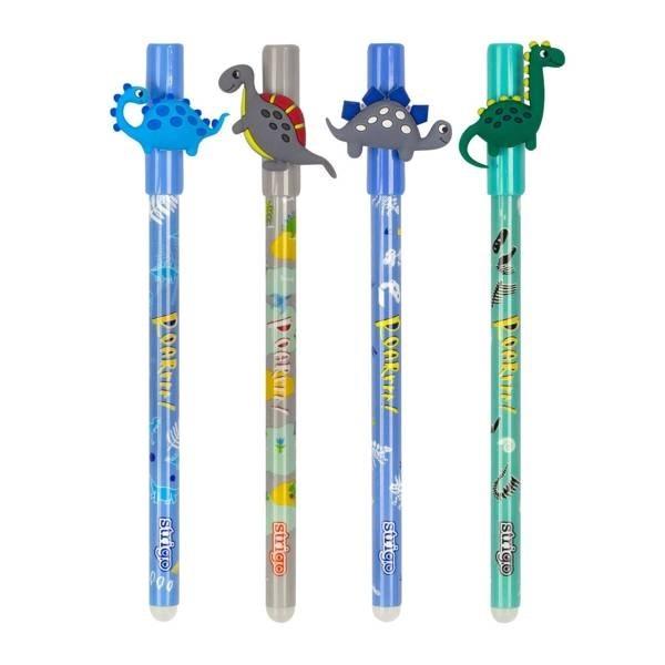 Wymazywalny długopis STRIGO ze skuwką z serii Dinozaury. Średnica końcówki piszącej 0,5 mm. W display'u 36 sztuk po 9 sztuk ze wzoru.