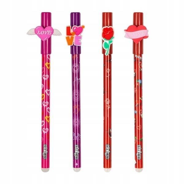 Wymazywalny długopis STRIGO ze skuwką z serii Love Forever. Średnica końcówki piszącej 0,5 mm. W display'u 36 sztuk po 9 sztuk ze wzoru.