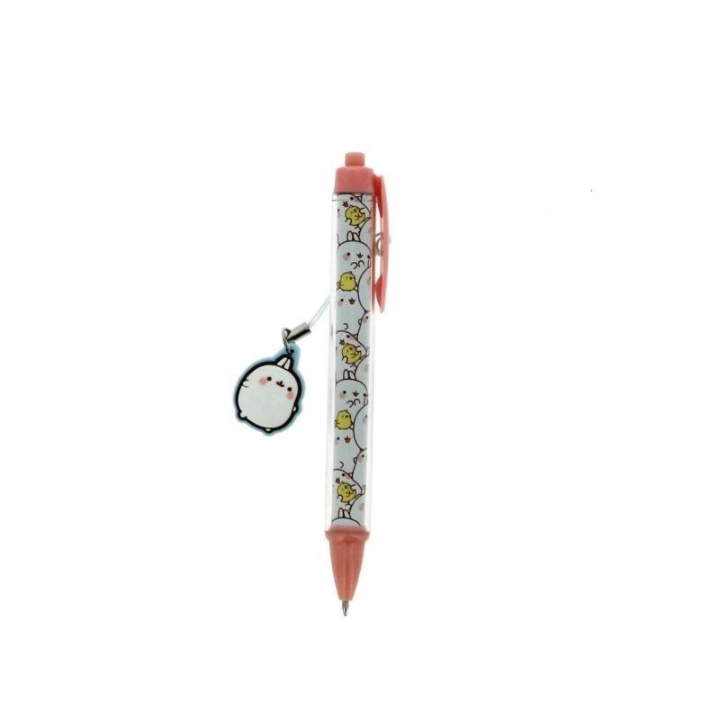 "Molang" to pełna ciepła i humoru animacja o wielkiej przyjaźni pomimo różnic, która za pomocą prostego obrazowania opowiada zabawne historie. Króliczek Molang i jego malutki żółty przyjaciel Piu Piu wprowadzą wszystkich doskonały nastrój! Długopis automatyczny w ciepłej, pastelowej kolorystyce. Niebieski wkład. Długopis zakończony gumową zawieszką z wizerunkiem Molanga. długość długopisu - 13,5 cm