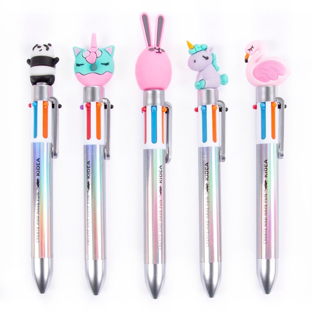 Długopis z figurką z wkładami w sześciu intensywnych kolorach. Jego dodatkowym atutem są urocze figurki: flaming, panda, króliczek, jednorożec i słodki donat, które uatrakcyjniają produkt i sprawiają, że dzieci chętniej po niego sięgają. Jego precyzyjna końcówka ułatwia pisanie oraz dokładne wyróżnienie odpowiednich fragmentów tekstu. Funkcja 6 w 1 sprawia, że jest on niezbędny w piórniku każdego dziecka, a zajmuje tak niewiele miejsca. Idealnie sprawdzi się jako prezent!