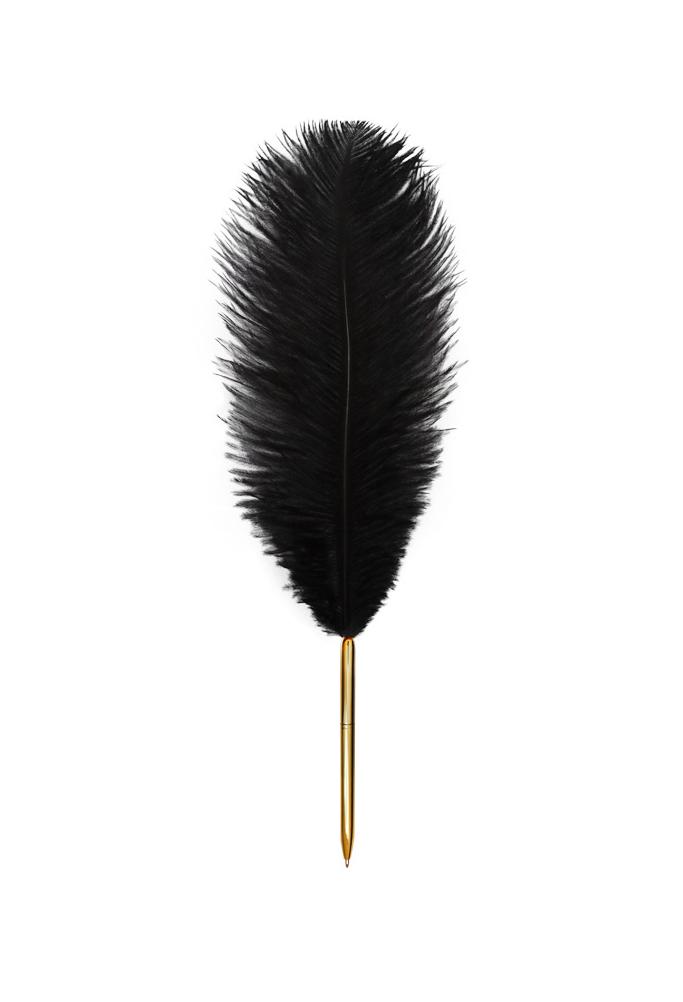 Długopis z ozdobnym piórem w kolorze czarnym.