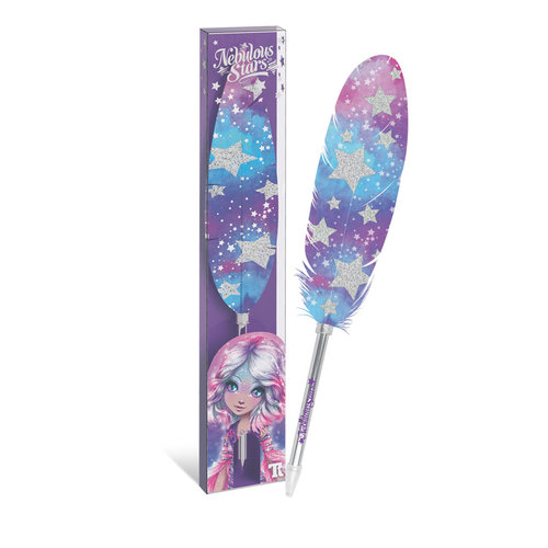 Niezwykle oryginalny gadżet prosto z magicznej krainy Nebulous Stars - długopis żelowy zwieńczony piórem. Nadrukowany, kolorowy wzór i ozdobne wykończenie nadają mu niepowtarzalnego charakteru. To prawdziwa gwiazda wśród przyborów szkolnych!  Cechy pióra kulkowego Nebulous Stars:  - Cieniutkie, lekkie i przez to poręczne  - Pięknie się prezentuje  - Prawdziwe piórko z nadrukowanym wzorem  - Kolorystyka krainy Nebulous  Ostrzeżenia (!)  Produkt nieodpowiedni dla dzieci poniżej 3 roku życia. Używać pod nadzorem osoby dorosłej.
