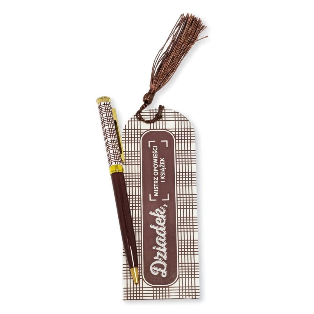 Długopis i zakładką dla Dziadka z dedykacją "Dziadek, mistrz opowieści i książek".