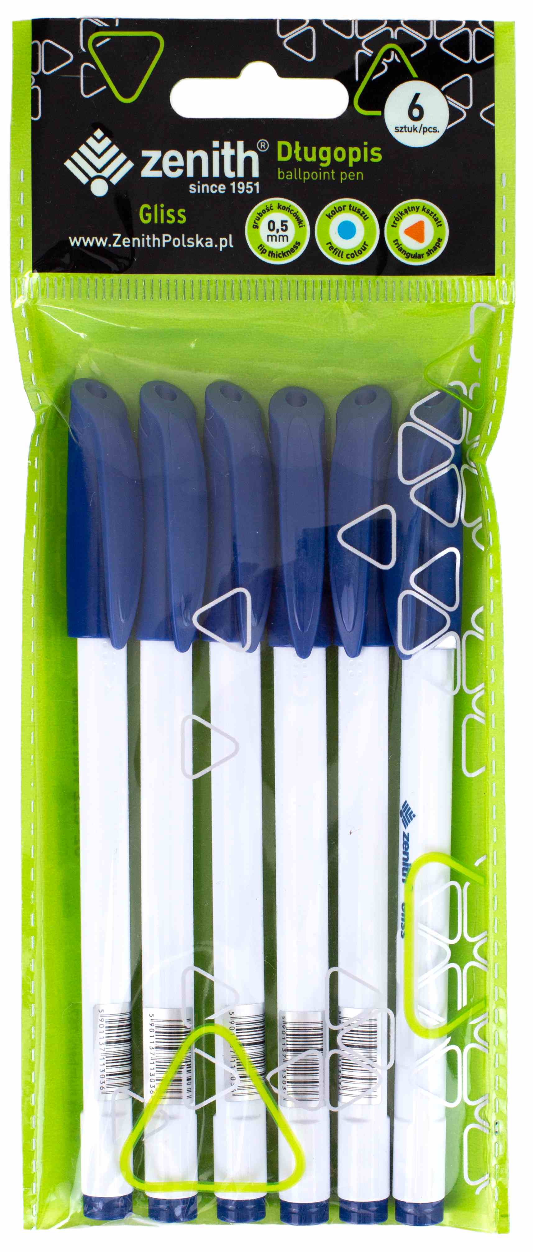 Opakowanie Długopis ze skuwką 0,5 mm Zenith Gliss niebieski 6szt.