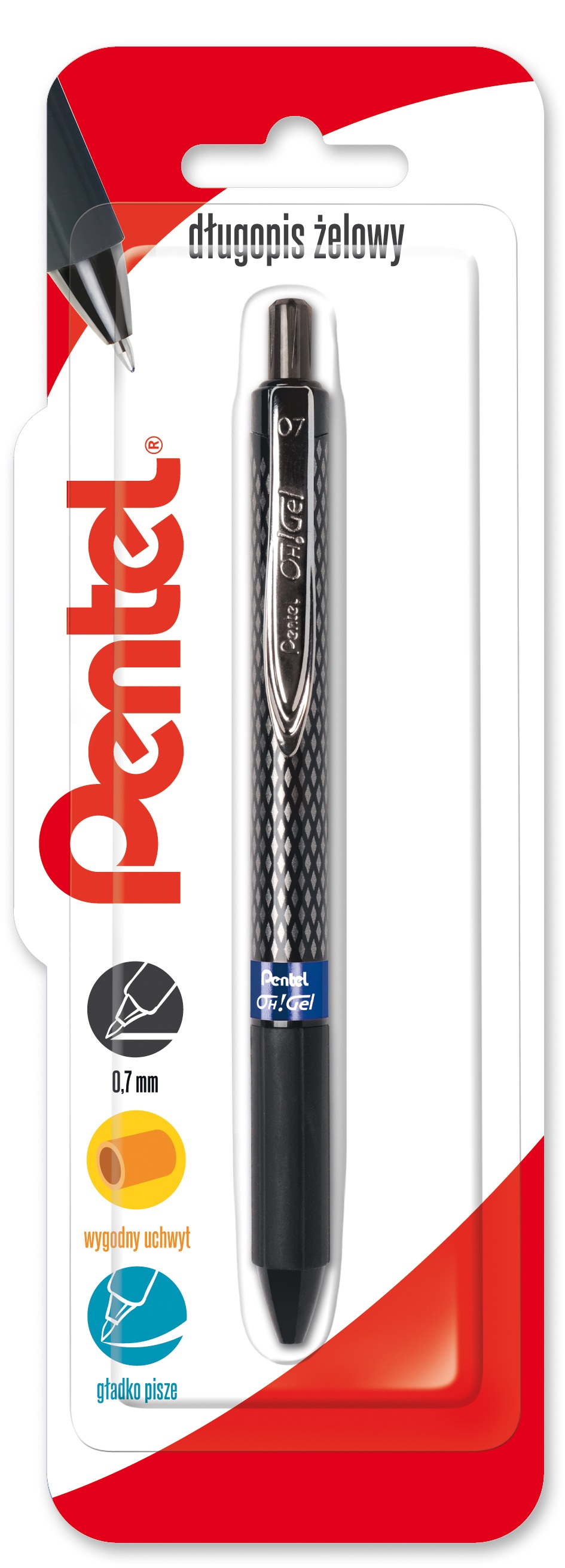 Długopis żelowy 0,7 mm z wygodnym gumowym uchwytem. Bezkwasowy tusz żelowy. Gladki przepływ tusz zapewniający czystą, równą i nasyconą linię pisania. Niebieski kolor tuszu x 1 sztuka, blister.