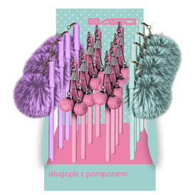 Długopis żelowy z ozdobnym pomponem. Dostępne 3 wzory.