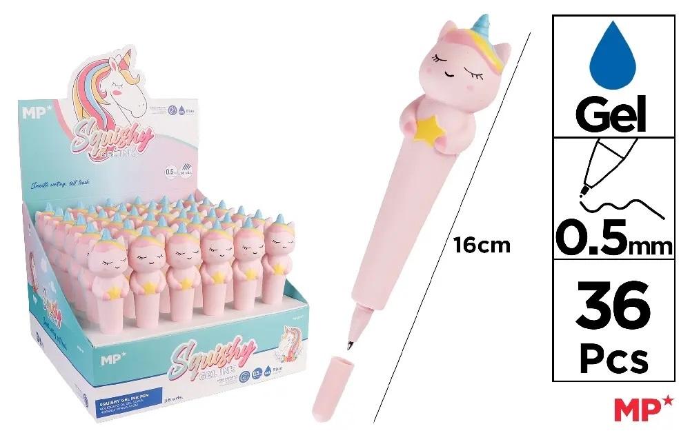 Długopis żelowy Squishy Jednorożec. Opakowanie zbiorcze zawiera 36 sztuki.