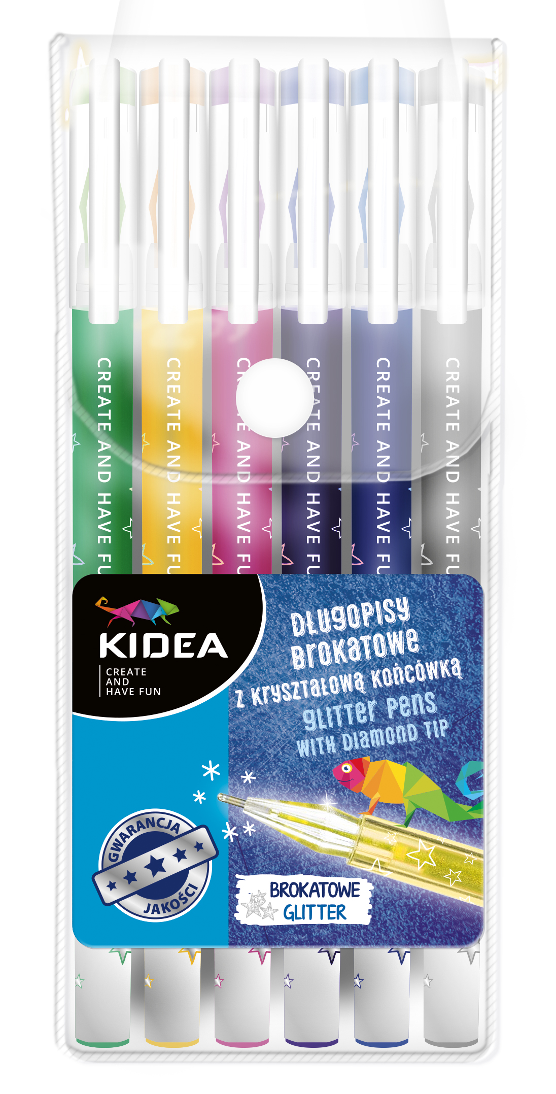 Opakowanie Długopisy brokatowe 6 kolorów KIDEA