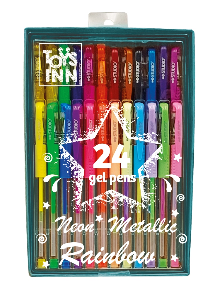 Zestaw 24 kolorowych długopisów żelowych z pewnością skradnie serce każdego miłośnika kolorowania. Markery znajdują się w poręcznym opakowaniu i są dealne do ozdabiania, rysowania, podkreślania.