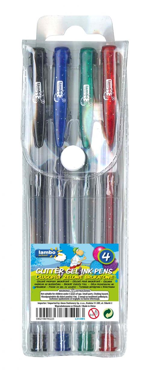Opakowanie Długopisy żelowe brokatowe 4 kolory LAMBO