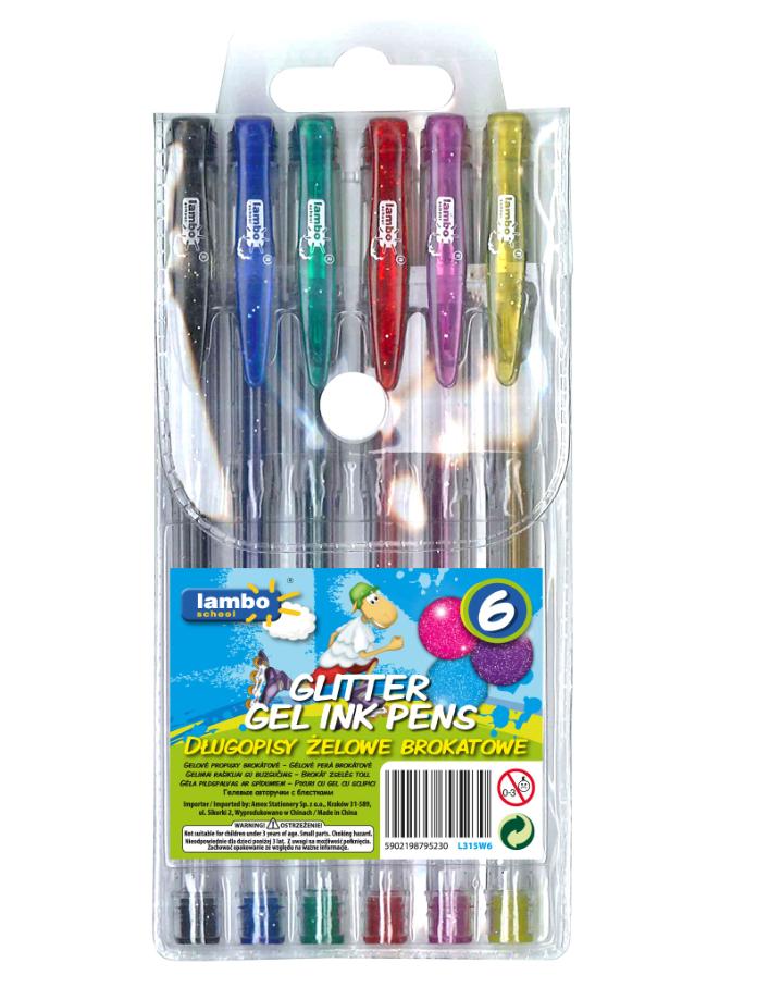 Opakowanie Długopisy żelowe brokatowe 6 kolorów LAMBO