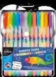 Długopisy żelowe Kidea fluorescencyjne i z brokatem 12 kolorów