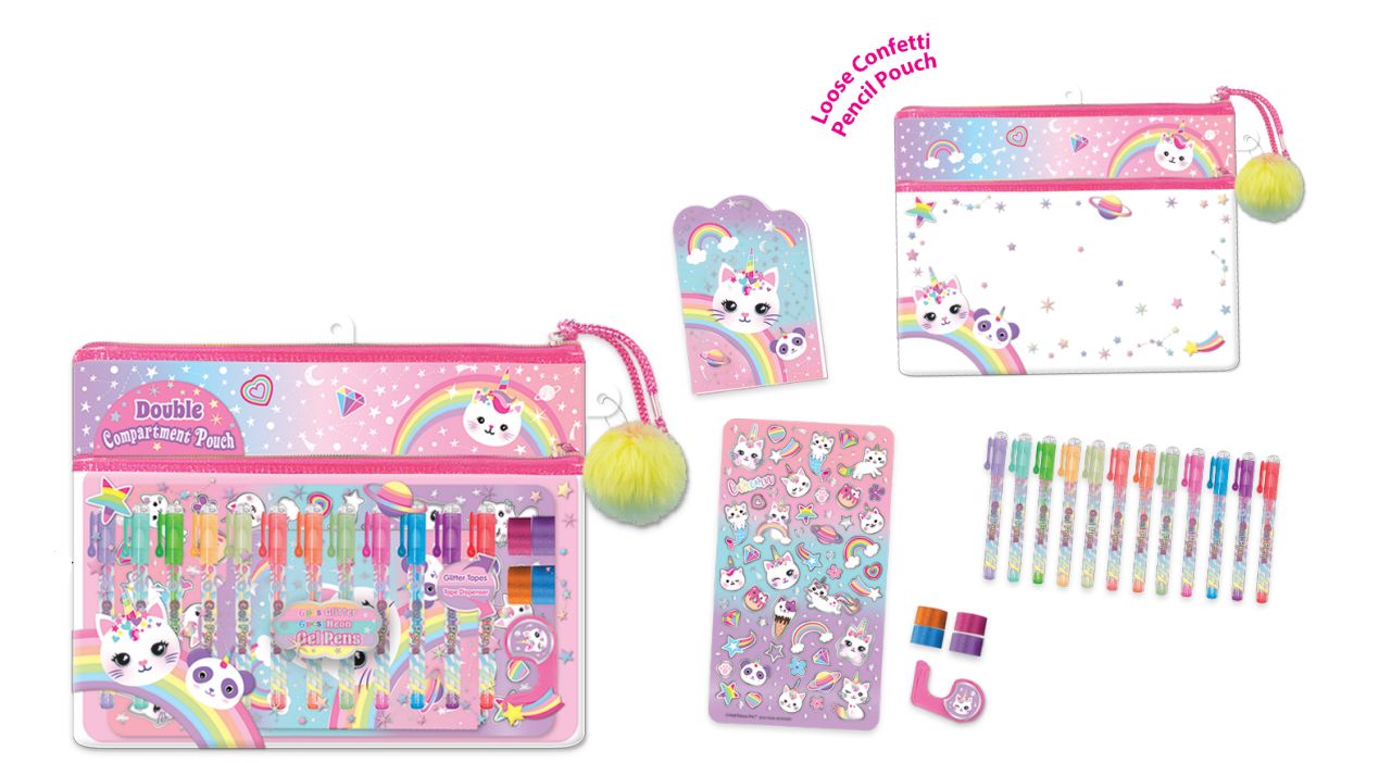 Zestaw 12 żelowych długopisów w saszetce z akcesoriami: