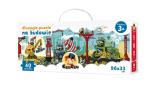 Wrrr! Brum! Na budowie jest tyle do zrobienia! Dobrze, że zgrana ekipa budowlana ma do dyspozycji potężne maszyny. Ciekawe, co tu będzie? To znakomita propozycja dla dzieci, które fascynują się pojazdami i maszynami budowlanymi. Duże, wytrzymałe elementy są idealnie dopasowane do rączek małych puzzlomaniaków, a pełna humoru ilustracja zachęci ich do zabawy oraz pobudzi ich ciekawość i wyobraźnię. Obrazek po ułożeniu ma aż 98 x 33 cm. W 40-elementowej puzzlach znajdziecie 3 układanki progresywne (5-, 6- i 8-elementowe).