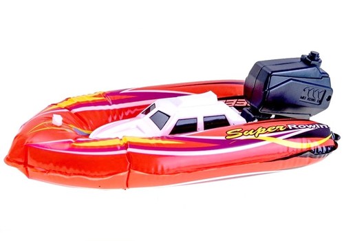 Dmuchana Łódź, motorówka do wody. Do wyboru 2 kolory: -Czerwona -Niebieska Dzięki swojej dmuchanej burcie bardzo łatwo utrzymuje się na wodzie. Z tyłu znajduje się silnik napędzający, zasilany bateriami - 2 x AA - brak w zestawie. Zestaw zawiera: -Motorówkę -silnik -Pompkę