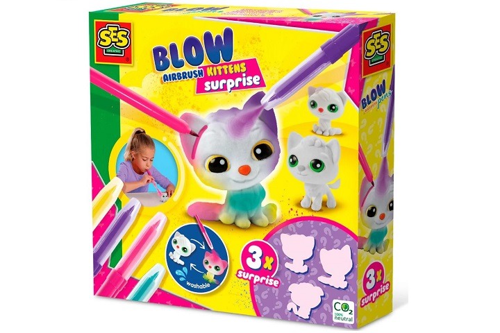 Dzięki czterem kolorowym pisakom do dmuchania możesz nadać każdemu kotkowi wesołe kolory, kropki i paski.