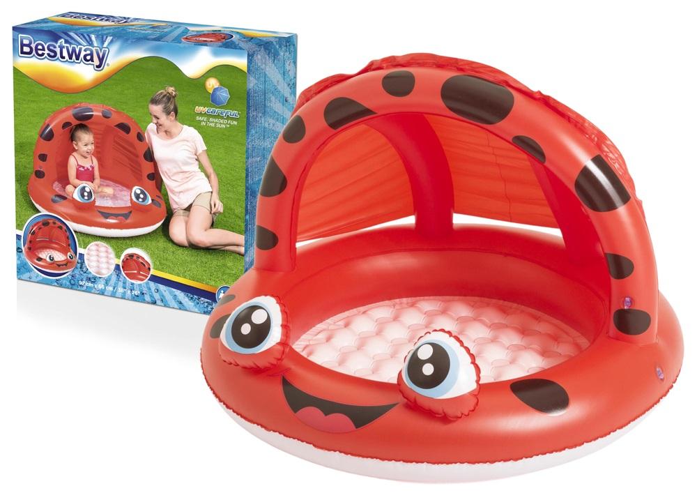 Dmuchany Brodzik Żabka Czerwony Bestway 52189 Dmuchany brodzik to idealnie rozwiązanie dla maluszków w upalne dni. Jest łatwy do nadmuchania, opróżniania i przechowywania przy czym świetnie sprawdza się podczas pierwszego kontaktu dzieci z wodą. Basen jest w motywie czerwonej żabki z pewnością przyciągnie wzrok i spodoba się najmłodszym. Ściany boczne zapewniają dzieciom bezpieczeństwo i ułatwiają monitorowanie ich zabawy. Dmuchany daszek skutecznie ochroni przed promieniami słonecznymi. Dane techniczne: - Wymiary 97 cm x 66 cm - Wytrzymały materiał PVC - pojemność 26 litrów - wiek od 2 lat, - miękkie dmuchane podłoże Waga: 1 kg Wymiary opakowania: 24 cm x 7 cm x 24 cm