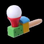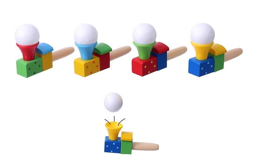 Drewniana dmuchawka logopedyczna wykonanan z drewna i pomalowana bezpiecznymi farbami. Dmuchawka znana również jako dmuchanka jest jedym z podstawowych zabawek używanych w gabinecie logopedycznym. Dzięki zabawie dmuchawką dzieci ćwiczą prawidłowy tor oddechowy. Ma to bardzo dobry wpływ na prawidłowy rozwój mięśni odpowiedzialnych za mowę oraz na rozprężanie płuc.