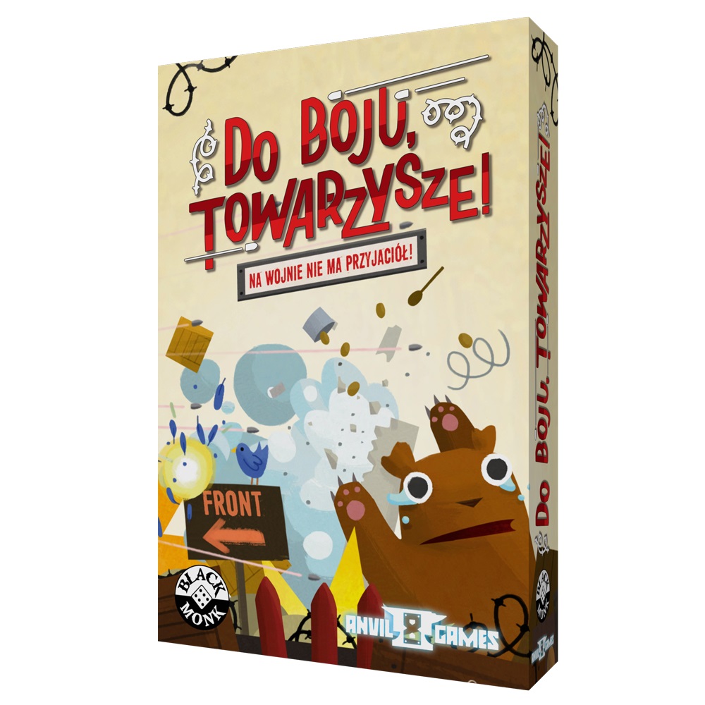 Wypchnij Towarzyszy na pierwszą linię frontu i pozostań ostatnim żywym graczem! Nie pozwól, by atak trafił właśnie Ciebie i pamiętaj, że na tej wojnie nie masz przyjaciół. Pełna negatywnej interakcji gra karciana, budząca salwy śmiechu i jęki zawodu, gdy Towarzysze pokrzyżują Twoje plany. Nie wychodź przed szereg – wypchnij tam przeciwnika! Zagrywaj karty Manewrów i Wydarzeń, by skryć się za plecami innych… ale najpierw musisz przewidzieć ich ruchy! Zbieraj Ekwipunek – Hełm, Kamizelka czy Maska Gazowa mogą uratować Cię przed stratą życia. Równoczesna, dynamiczna rozgrywka sprawi, że ani przez chwilę nie poczujesz się bezpiecznie! Pamiętaj, nie chcesz być na celowniku! Przeżyj, to rozkaz! Zawartość pudełka: - 165 kart; - instrukcja. Informacje dodatkowe: - 2-8 graczy; - sugerowany wiek: od 8 lat; - czas rozgrywki: ok. 20 minut.