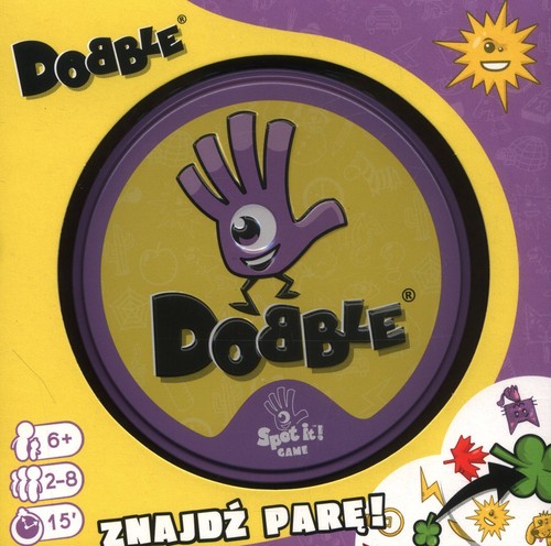 Spójrz na pierwszą kartę, którą trzymasz w ręku oraz na tę, która leży na środku stołu. Znajdź na nich wspólny symbol, nazwij go i szybko pozbądź się swojego kartonika. Teraz następny! Tylko nie zwątp, każda karta łączy się z inną zawsze tylko jednym symbolem! Dobble to rozrywka absolutnie dla każdego – gra nadaje się zarówno do zabawy z dziećmi, jak i na imprezy dorosłych. 55 kolorowych kart zamkniętych jest w solidnej, metalowej puszce, dzięki czemu łatwo zabrać Dobble ze sobą i grać absolutnie wszędzie: w poczekalni u lekarza, w pociągu, na wycieczce… Dlaczego pokochasz tę grę? Przyjrzyj się obrazkom, znajdź parę, przejdź do kolejnej karty. Wydaje się proste, prawda? Ale pary nie są tak oczywiste: obrazki na kartach są różnej wielkości, odwrócone, a przede wszystkim otoczone zupełnie innymi grafikami, co potrafi zmylić nawet najbardziej spostrzegawczych graczy! Żadna inna gra nie rozrusza towarzystwa tak jak Dobble. Żadna nie jest tak prosta i nie daje tyle zabawy w ciągu tych kilku minut! Rozgrywka jest bardzo szybka, emocjonująca, a przy stole dużo się dzieje, gdy każdy próbuje wyprzedzić innych uczestników w wyścigu do zwycięstwa. Poza tym: Tylko Dobble tłumaczy się w minutę! Gra ukryta jest w solidnej, metalowej puszce, która z powodzeniem wytrzyma transport gdzie tylko zapragniemy. Okrągłe, solidne karty są bardzo wygodne podczas zabawy, nawet dla niewielkich dziecięcych rączek. Opakowania nowych wersji Dobble zostały zaprojektowane tak, by być bardziej eko! Zawierają o 95% mniej plastiku, a papier i tektura wykorzystane do ich produkcji mają certyfikat FSC.