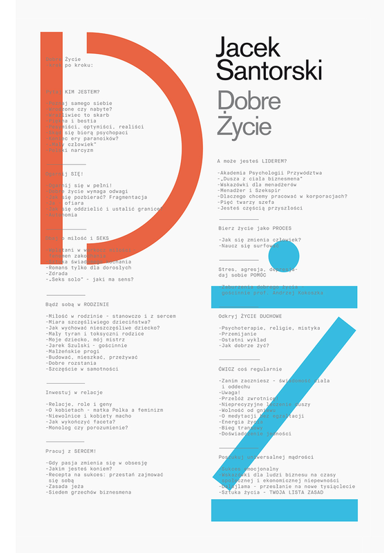 Z kilkunastu swoich książek, Jacek Santorski wybrał fragmenty, które wywoływały najsilniejszy odzew Czytelników, są do dziś w pełni aktualne i dały się uporządkować w swoisty program pracy nad sobą - syntezę kilkudziesięciu lat doświadczeń autora, jako psychoterapeuty, trenera a potem doradcy w biznesie. W książce znajdziemy klucze do rozwiązań swoich problemów i ujawnienia ukrytych możliwości - od seksu, przez związki miłosne, role w rodzinie i w pracy, po zdrowie oraz duchowy wymiar Twojego DOBREGO ZYCIA.