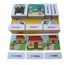 Zestaw plakietek i etykietek służy do przenoszenia obrazów z rzeczywistości na obrazki, uswiadamianiu dziecku, że słowo (napis) oznacza konkretną rzecz, czynność czy sytuację oraz do nauki czytania. Uczy dziecko rozumienia pytań oraz udzielania odpowiedzi.Zestaw ten służy do nauki rozumienia pytań: Dokąd? Gdzie? Skąd? oraz do nauki użycia przyimka i odpowiedniej końcówki rzeczownika np: Dokąd? Do lasu. Gdzie? W lesie. Skąd? Z lasu. Służy również do globalnego czytania wyrażeń przyimkowych. - 24 elementów obrazkowych