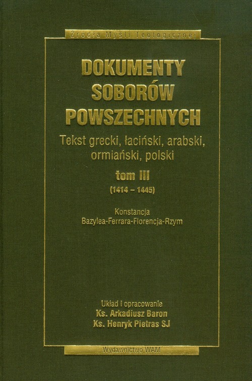 Pierwsze w Polsce wydanie oryginalnych tekstów soborów wraz z tłumaczeniem polskim. Tom III Dokumentów Soborów Powszechnych obejmuje akta soborów w Konstancji (1414-1418) i olbrzymiego soboru w Bazylei-Ferrarze-Florencji-Rzymie (1431-1445). Na tych soborach podejmowano decyzje, które zaważyły na kształcie Kościoła i Europy.