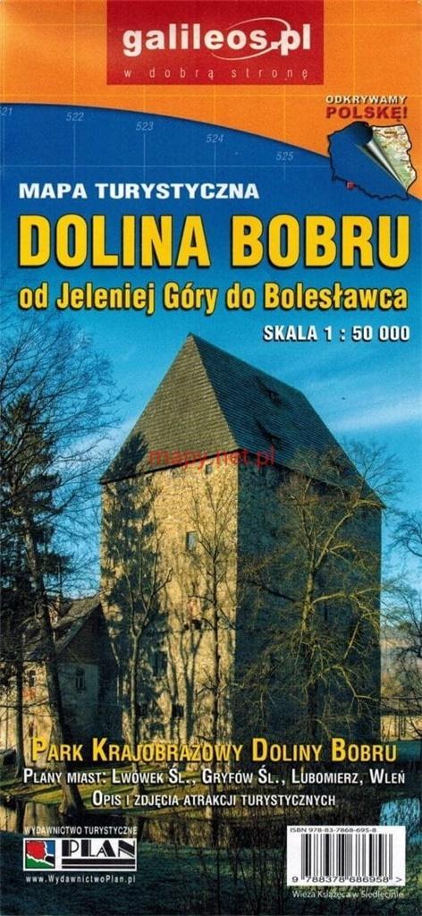 Składana mapa turystyczna Doliny Bobru w skali 1:50 000 wydawnictwa Galiloes, obejmująca obszar od Jeleniej Góry do Bolesławca.
