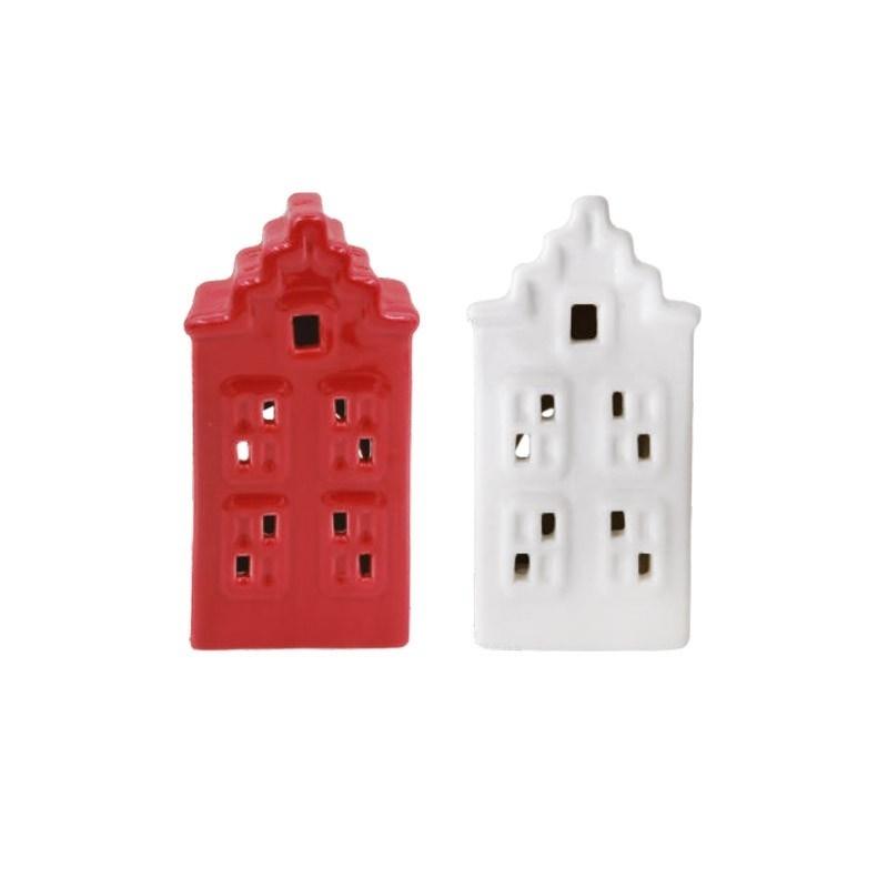 Domek ceramiczny mały mix 2 wzorów, biały i czerwony.