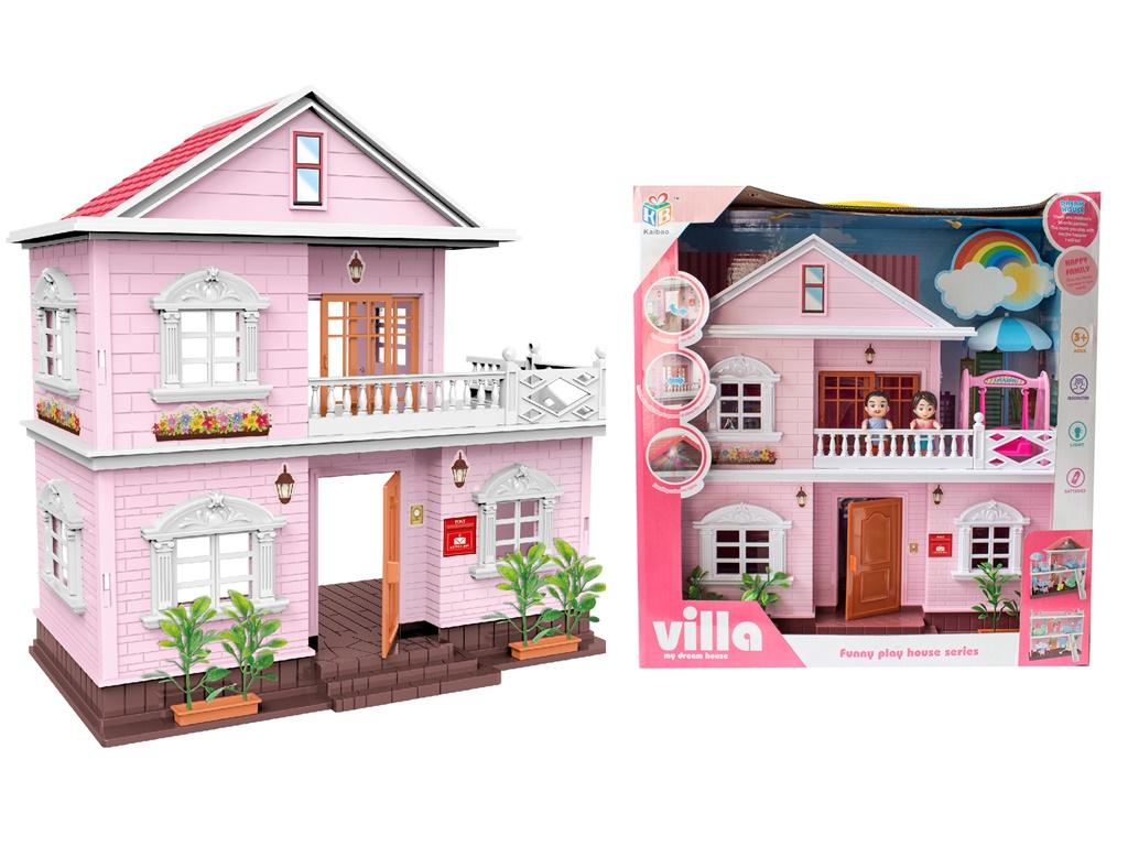 Domek dla lalek - 2 kondygnacje, 3 laleczki w zestawie, akcesoria wyposażenia domu, światło, zasilanie 3xAG13 (dołączone)