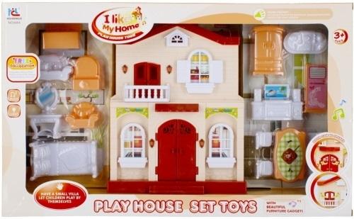 Zalety produktu: Domek posiada funkcje świetlne oraz dźwiękowe, występuje w dwóch wersjach kolorystyki drzwi posiadają funkcje otwierania. Jedną z ulubionych form zabawy każdego dziecka to bez wątpienia zabawa w dom. Z domkiem MEGA CREATIVE zabawa ta będzie wyjątkowo udana! Zestaw zawiera: składany domek, meble do domku/salonu: stół + 4 krzesła, szafa, komoda, witryna z TV i sprzętem audio, toaletka, fotel, sofa, skrzynia na ubrania. Wymaga zasilania bateriami 2 xAALR06 - Nie załączonymi do zestawu. Zabawka przeznaczona dla dzieci w wieku: 3+. Produkt wykonany z plastiku. Wymiary opakowania (dł. x wys. x gł.) [cm]: 50,5x31x11 Waga produktu w opakowaniu:{kg.} 0,89kg.