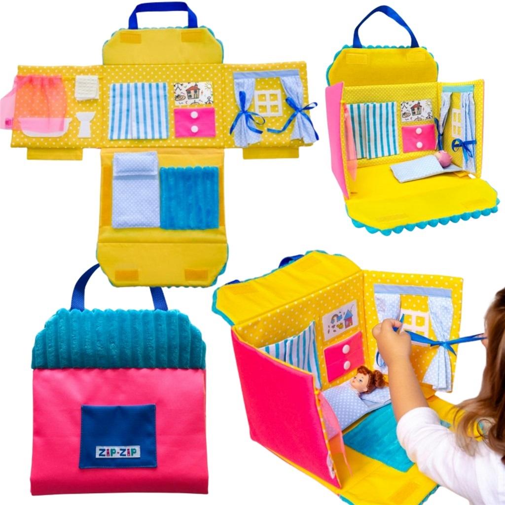 Domek oferuje mnóstwo możliwości zabawy, umożliwiając maluchom przeniesienie swoich lalek w różne sytuacje życiowe. Zabawka wykonana z miękkiego materiału wprowadzi dzieci w magiczną krainę kreatywności i zabawy.