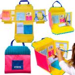Domek jest praktyczny i przenośny, składając się w torbę poręczną z uchwytem. To udogodnienie pozwala na zabieranie go ze sobą wszędzie. Do produkcji domku użyto wysokiej jakości i bezpiecznych materiałów.