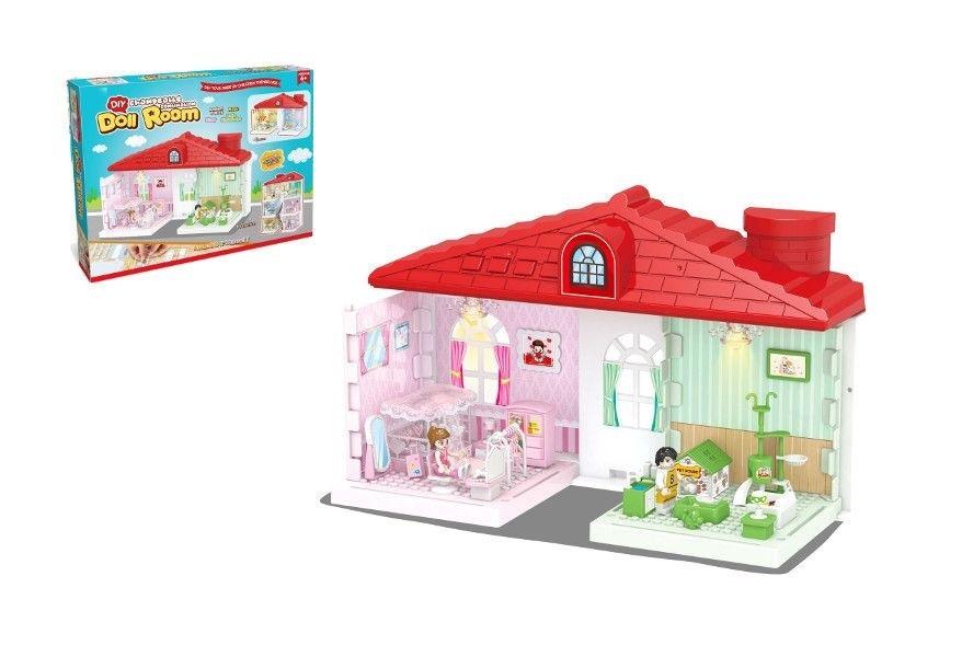 Plastikowy domek z akcesoriami do jego umeblowania. Wbudowany jest moduł dźwiękowy. Domek świeci również kolorowym światełkiem. Całość spakowana jest w kartonowe pudełko, posiada też poręczny uchwyt. Zabawka działa na baterie typu AA. Baterie nie są niezałączone. Produkt przeznaczony dla dzieci powyżej 6 lat.