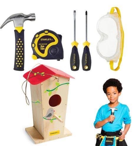 Do domku dla ptaków dołączony jest 5-częściowy zestaw narzędzi, wykonany z twardej stali i gumy, który pozwala dzieciom czuć się pewnie podczas własnych projektów.