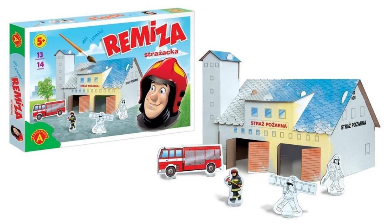 Wspaniała zabawka dla wszystkich kreatywnych dzieci. W zestawie znajduje się kartonowy budynek remizy strażackiej, wraz z postaciami strażaków i samochodem. Całość