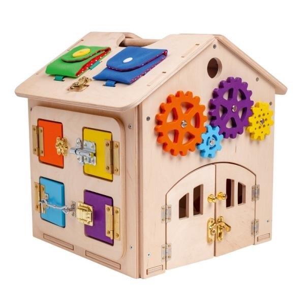 Domek mini na długo zainteresuje dziecko! Zabawka zawiera różne zamki, okienka, kieszenie i ruchome elementy. W domku dziecko może schować swoje ulubione zabawki. Graj i trenuj: drobną motorykę, wyobraźnię i logiczne myślenie. Wszystkie elementy są wykonane ręcznie, z naturalnego drewna i pokryte bezpieczną farbą wysokiej jakości.