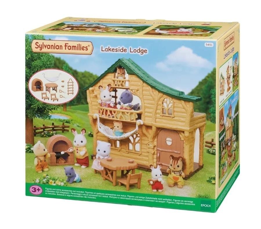 Nie ma nic piękniejszego niż wakacje w domku nad jeziorem Sylvanian Families. Można tu przeżyć wspaniałe chwile. Relaks w hamaku czy wspólny wieczór przy murowanym grillu  tu każdy cudownie wypocznie. Na dachu jest niewielki plac zabaw dla maluchów. Mogą się na niego wspinać i zjeżdżać z drugiej strony. Poprzez klapę w dachu można dostać się do domu. Drzwi domku nad jeziorem można otwierać, a na pierwsze piętro zwierzątka dostaną się po drabince linowej. Hamak można powiesić w domu lub przed domem, a z dwóch balkonów roztacza się wspaniały widok na jezioro. Wieczory upływają przy grillu i wspólnym biesiadowaniu przy stole. Zwierzątka Sylvanian Families spędzą tu naprawdę cudowne wakacje. Aby uzyskać duży dom, domek nad jeziorem można połączyć z wyjątkowym domkiem na drzewie. Zestaw Domek nad jeziorem zawiera domek z drzwiami, murowany grill, hamak, drabinkę linową, stół z dwoma krzesłami, dwie filiżanki i dwie pianki. Produkt przeznaczony dla dzieci od 3 roku życia.