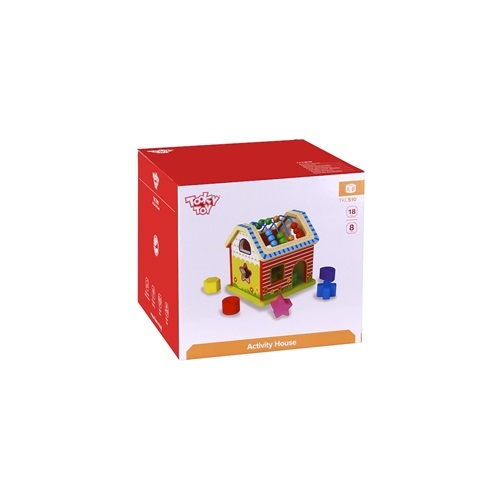 Domek Sorter to drewniana zabawka, która nauczy dziecko rozpoznawać kształty oraz kolory. Domek ma klocki, które idealnie mieszczą się w dłoni maluszka. Zabawa polega na dopasowaniu kształtów w odpowiednie okienka w domku. Dach domku to liczydło, które pomoże w nauce liczenia. Zabawki Tooky Toy są bezpieczne. Posiadają certyfikaty ekologicznych produktów. Pozbawione ostrych krawędzi, dobrze wygładzone, pomalowane są nietoksycznymi farbami i lakierami. Wiek: 18 m+