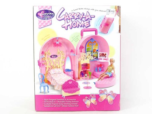 Uroczy domek dla lalek w walizce z kanapą jest dostosowany dla lalek do wysokości 29 cm. Domek jest to zabawka 2w1, gdzie dziewczynka będzie mogła jeździć z własną walizką z wyciąganą rączką oraz jednocześnie wozić domek dla lalek wraz z licznymi akcesoriami.