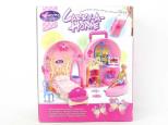 Domek w walizce wraz z akcesoriami (bez lalki) dzieli się na 2 części. Część lewa to sypialnia z jednoosobowym łóżkiem wraz z ażurowymi zdobieniami na ścianie. Łóżko posiada pościel (może się różnić kolorystycznie od przedstawionej na zdjęciach). Obok łóżka znajduje się toaletka z bezpiecznym lusterkiem nad łóżkiem można powiesić przepiękny żyrandol. Z przodu łóżka można usiąść, aby przebrać się na nowy dzień pełen przygód. Na toaletce czy półeczce możemy położyć różne akcesoria dołączone do zestawu, np perfumy czy zdjęcie.