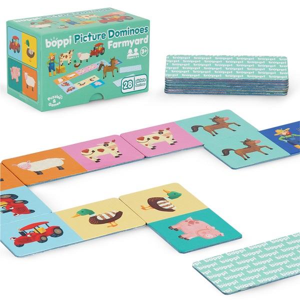 Boppi, domino rysunkowe Farma to wspaniała zabawa i nauka. Zestaw zawiera 28 elementów z pięknymi ilustracjami z życia na farmie. Spróbujcie ułożyć kolorowe płytki domina obok siebie dopasowując je parami. Oczywiście zasada wygrania wciąż ta sama: wygrywa ten zawodnik, który jako pierwszy pozbędzie się wszystkich płytek. Układanie i dopasowywanie płytek domina doskonale rozwija wyobraźnię przestrzenną, ćwiczy koncentrację i logiczne myślenie. Produkt wykonany z wytrzymałej tektury pochodzącej z recyklingu.