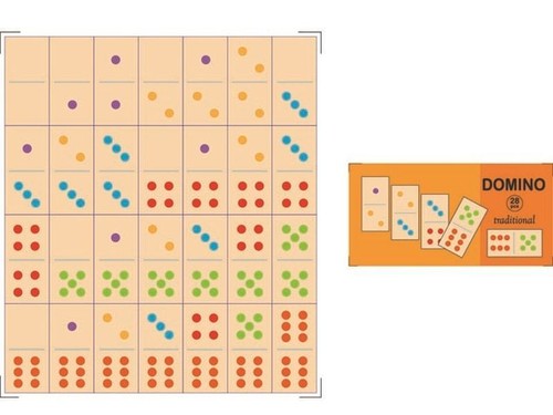 Drewniane domino tradycyjne Zawartość 28 klocków Zabawka dla dzieci od 12 m-ca życia.