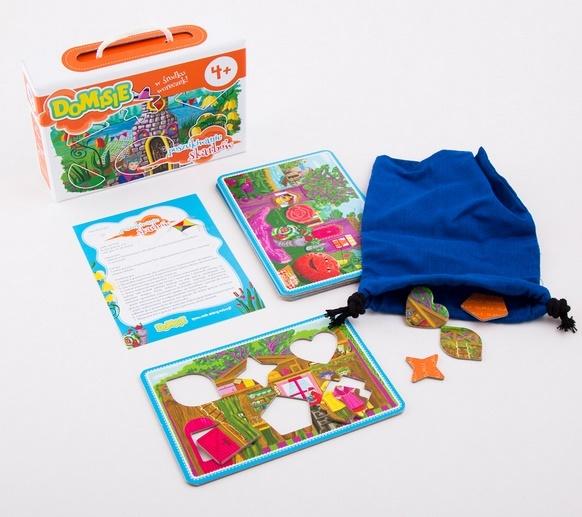 Zestaw ilustracji przedstawiających Domisiową Krainę stanowi propozycje ćwiczeń manualnych oraz analizy i syntezy wzrokowej dla dzieci w wieku przedszkolnym. Gra polega na tym, ze dziecko stara się wylosować z woreczka właściwy element pasujący do jego obrazka. W ten sposób dziecko uczy się rozpoznawania i nazywania kształtów. Przez dobieranie do całości wyodrębnionych elementów ilustracji, ćwiczy koncentracje oraz rozwija myślenie analityczne.