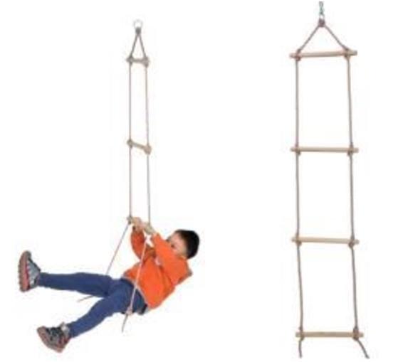 4-SZCZEBELOWA DRABINA WSPINACZKOWA WYM: 150 X 30 CM, LINA: 10 MM, DREWNIANY DRĄŻEK: 30 X 2,2 CM, ODSTĘP MIĘDZY SZCZEBELKAMI: 40 CM