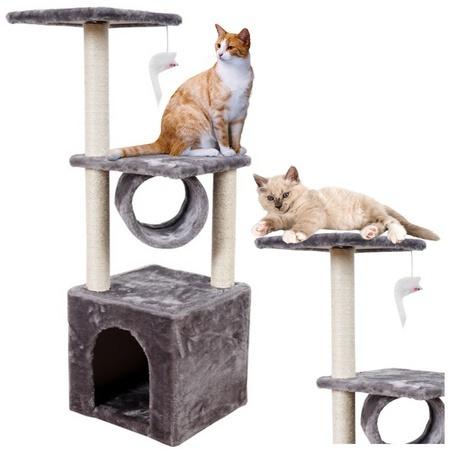Drapak dla kota z domkiem, tunelem, platformami i zabawką Podaruj swojemu kotu idealne miejsce do zabawy, odpoczynku i ostrzenia pazurków! Nasz drapak dla dużego kota to funkcjonalne i bezpieczne rozwiązanie, które pomoże Ci chronić meble przed zniszczeniem. KLUCZOWE CECHY PRODUKTU Wysoka stabilność Drapak ma dużą podstawę, co zapewnia stabilność i bezpieczeństwo Twojego kota podczas zabawy. Wytrzymałe materiały Podstawa drapaka obita jest miękką tkaniną pluszową, odporną na wilgoć i nieprzyjemne zapachy. Wysoka jakość wykonania Drapak cechuje się odpornością na ścieranie, co zapewnia długotrwałe użytkowanie. Bezpieczny dla kota Wykonany z tkaniny pluszowej i sizalowego sznurka, które są bezpieczne dla zwierząt. Plac zabaw Platformy, tunel, słupki do drapania i zabawka-myszka zachęcają kota do aktywności fizycznej i rozweselają go przez długi czas. Rozmiar XL Duża wysokość drapaka zapewnia odpowiednią przestrzeń do zabawy, drapania i odpoczynku. SPECYFIKACJA Wysokość: 107 cm Wymiary podstawy domku: 31x31 cm Wymiary platform: 25x25 cm (mniejsza), 30x30 cm (większa) Wymiary opakowania: 36,5 cm x 36,5 cm x 33 cm Średnica tunelu: 16 cm Materiał: sizalowa lina, tkanina pluszowa, płyta wiórowa Certyfikaty i standardy bezpieczeństwa: Tak Wiek użytkownika: Bez ograniczeń ZAWARTOŚĆ ZESTAWU Domek, tunel, dwie platformy obserwacyjne, słupki do drapania Zabawka-myszka na sznurku Śruby montażowe, klucz imbusowy DODATKOWE ATUTY Nowoczesny design, który wpasuje się w każde wnętrze Bezpieczeństwo i trwałość, dzięki solidnej konstrukcji Idealny na prezent dla miłośników kotów