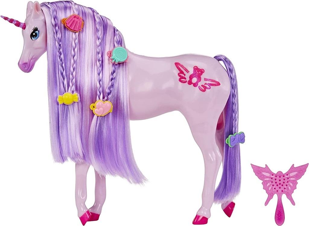 Lilac ma w zestawie jasnoróżową szczotkę w kształcie motyla do układania długiej, jedwabistej, wielokolorowej grzywy i ogona. Stwórz niepowtarzalną fryzurę jednorożca za pomocą dołączonej szczotki.