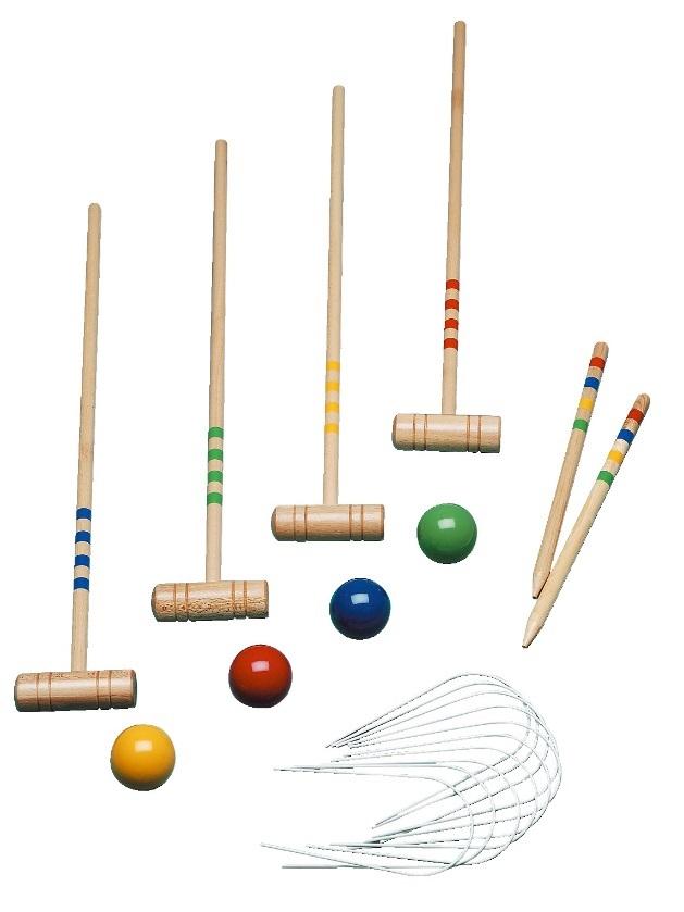 2 drewniane 'wickets' (bramki) z kolorowymi oznaczeniami