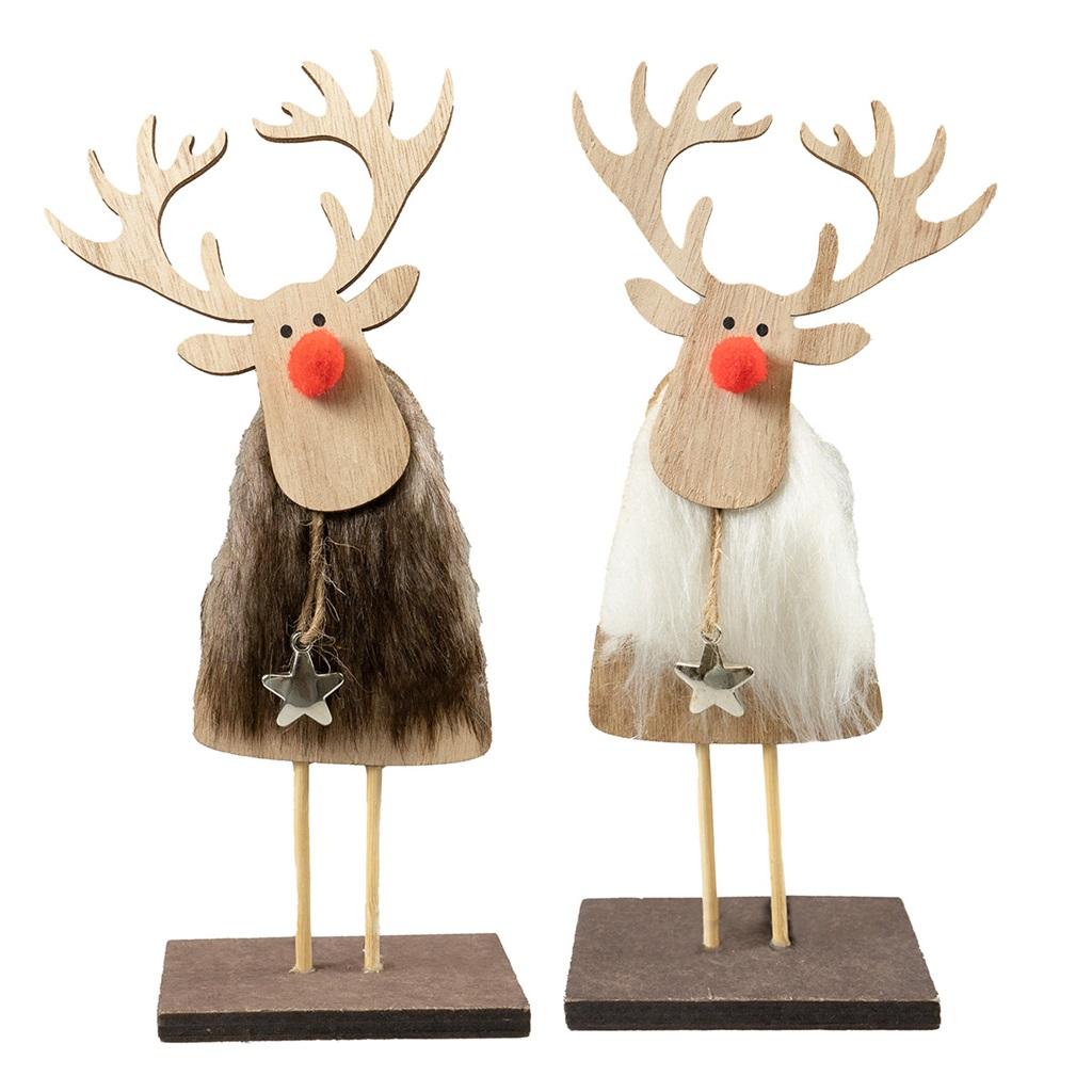 Opakowanie Drewniana dekoracja renifer z futerkiem