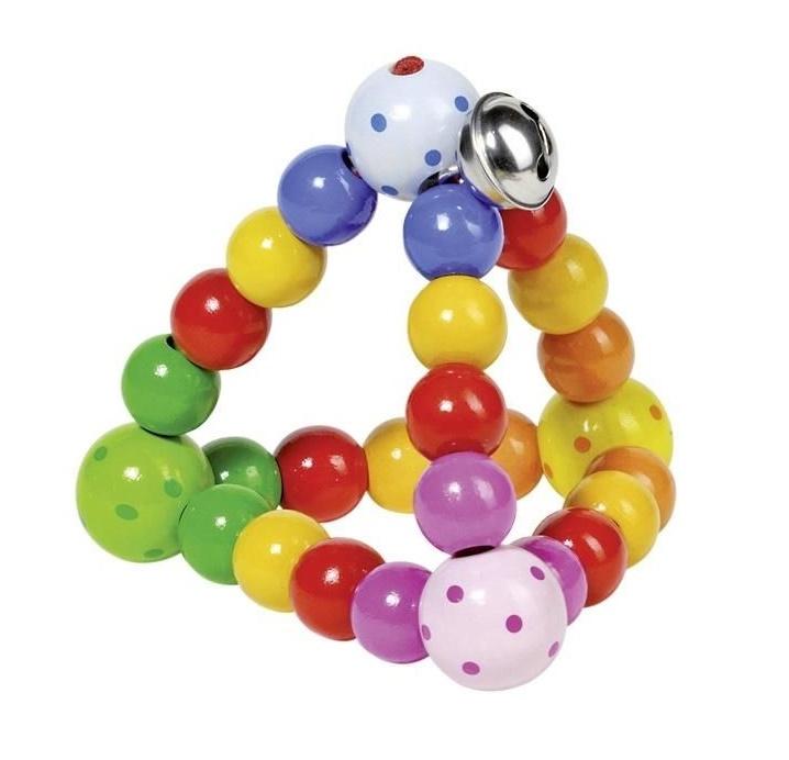 Pobudzająca zmysły i zachęcająca do działania! Grzechotka zawsze spełnia swoją rolę, kiedy ma niezwykłe kształty, wydaje dźwięki i jest kolorowa. Musi być oczywiście również bezpieczna dla niemowlaka, którego zmysły dotyku, słuchu i wzroku ma angażować. Złożona z drewnianych kuleczek w sześciu kolorach, dzwoneczka i połączona wytrzymałą, elastyczną linką, grzechotka trójkąt powinna być produktem pierwszego wyboru.